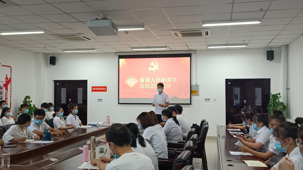 会议在庄严的《国歌》中拉开序幕,由南超等11名发展对象逐一宣读入党申请书,潘文卓等20名预备党员逐一宣读转正申请书,发展对象分别介绍了自己的个人情况、对党的认识和入党动机,预备党员就本人预备期内思想、学习、生活、工作等各方面情况进行了细致汇报,表达了自己入党的志愿和决心,并对自己预备期内的进步与不足进行了认真总结和改正方向。