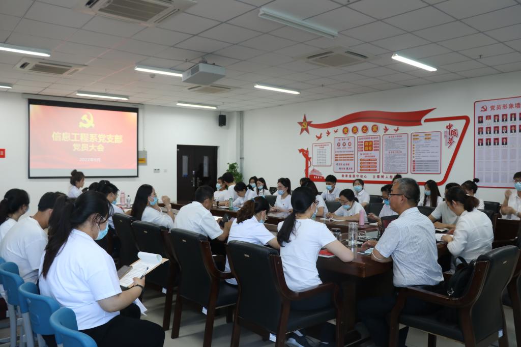 为进一步加强基层党组织建设,落实党支部发展党员工作计划,2022年6月22日,信息工程系党支部在C3-1-510会议室就发展党员工作召开党员大会,此次会议由信息工程系党支部书记田娟主持,19名党员老师、11名发展对象以及20名预备党员参会。