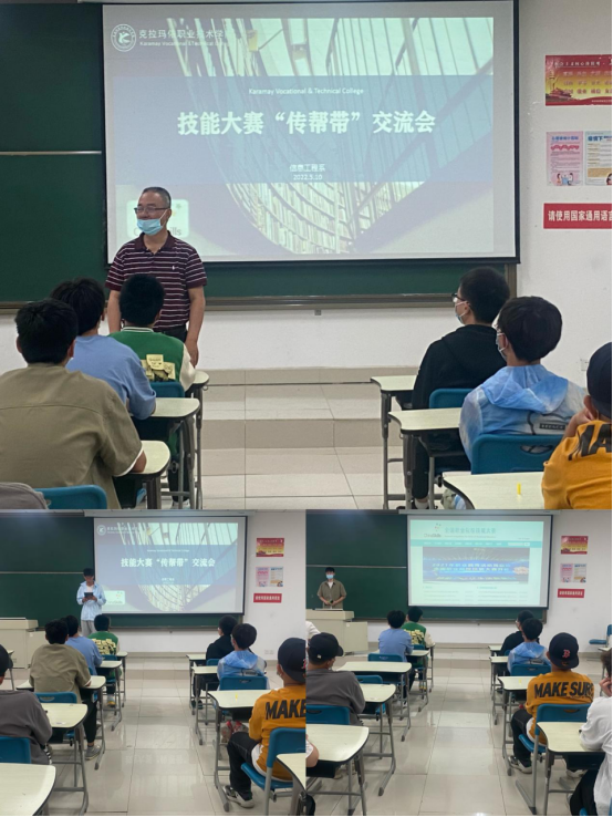 2021年我系技能大赛成绩斐然,2022年国赛参赛名额根据2021年比赛情况推荐前2名队伍参赛,我系有7支队伍经自治区推荐进入国赛。陈辉老师介绍了这些年我系在技能大赛所获得的成绩,对同学们提出了希望,魏老师对全国职业技能大赛的内容、参赛的赛项都做了详细说明选手们分享了2021年竞赛的收获和体会,畅谈了这次比赛对自己人生发展带来的深刻影响以及对大赛辅导过程中的经验、不足及后续训练计划作了详细阐述。