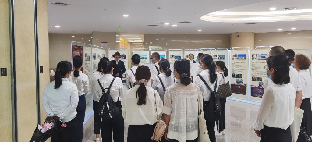 活动第一项,全体党员教师共同参观了图书馆的党史学习教育展厅,由宣讲团的学生为大家一一讲解了展厅的内容,从党的一大到十九大,从石库门到天安门,中国共产党领导全国各族人民通过不屈不挠的革命斗争,完成了新民主主义革命,实现了民族独立、人民解放;完成了社会主义革命,确立了社会主义基本制度;进行了改革开放新的伟大革命,开创、坚持、发展了中国特色社会主义。回顾党的百年风雨历程,就是为中华民族的独立、解放、繁荣,为中国人民的自由、民主而不懈奋斗的历史,就是不忘初心、牢记使命,不断自我革命、发展壮大的历史。