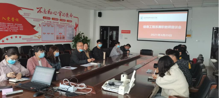 2021年4月25日下午,信息工程系召开了兼职教师座谈会。会议由陈辉主任主持,参与本次会议的有副主任杨静老师、教研室主任、指导老师、本学期信息工程系兼职教师。