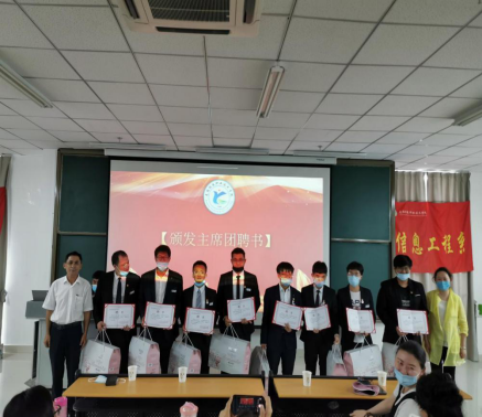 会上,大家一起观看了学期总结视频,回顾了整个学期的努力和硕果。随后由党支部书记田娟老师和辅导员吐尔逊麦麦提老师为第二十届团总支学生会成员颁发聘书,接着主持人宣读了本次大会的表彰决定,并邀请信息系全体班主任老师们为获奖学生颁奖及合影留念。