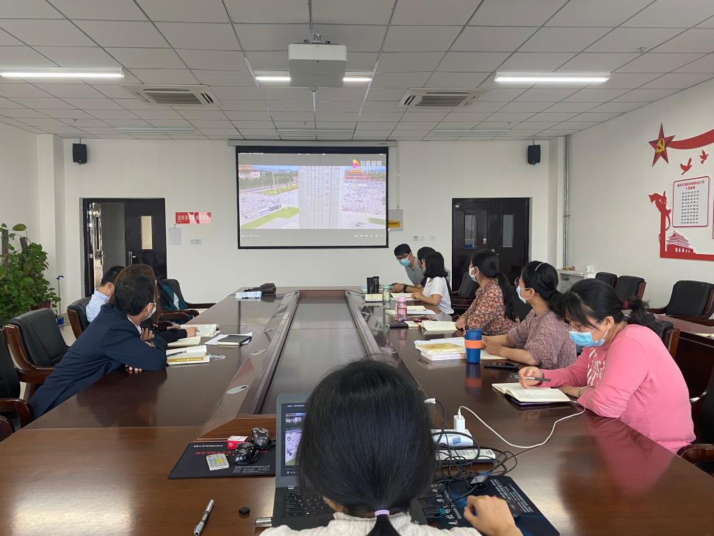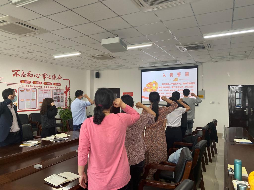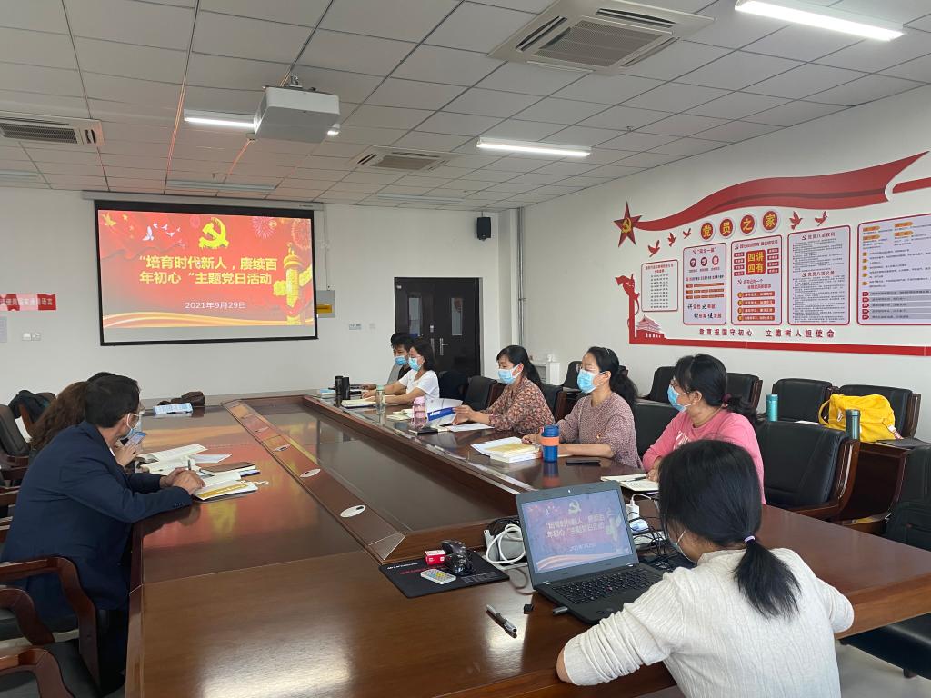 活动开始,首先由马肖老师通报九月份的党费收缴情况,全体党员均已按时缴纳党费。然后全体党员高举右手面向国旗庄严宣誓,重温入党誓词,使各位党员感受誓词的无穷力量和“党员”两个字蕴含的政治责任。活动第三项,张铭璐同志组织全体党员观看视频《永葆初心:习近平讲述百年征程》,通过习近平总书记的讲述,从历史发展的长河中强化对中国共产党伟大历程的认识,领会共产党人的初心与使命,筑牢信仰之基。