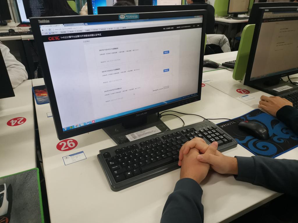 在学院和系部领导的关心帮助下,在南京第五十五所技术开发有限公司精心指导下, 2021年11月27日,“1+X”云计算平台运维与开发职业技能等级证书初级考试在我校C3楼成功开展,此次考试共30人参加。本次认证考试由理论考试和实操考试两部分。