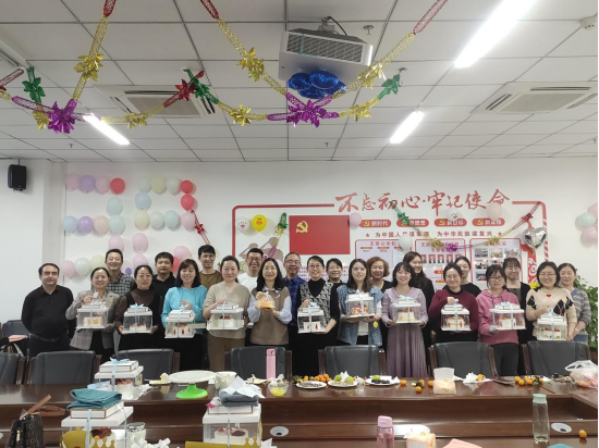 活动最后大家都开心的合影留念,拿着自己亲手制作的精美蛋糕,记录下与同伴快乐的时光,此次“同心同行 共铸辉煌”主题团建活动在甜蜜与欢乐的氛围中画上了圆满的句号。此次活动进一步加强了教师之间的交流,增进了感情,丰富了业余生活,舒缓了工作压力。两个小时的活动,不仅陶冶了大家的情操,也拉近了同事间的情谊。相信我系教师在今后的工作中将会更好的“同心同行,共铸辉煌”,为学校的发展做出更大的贡献。