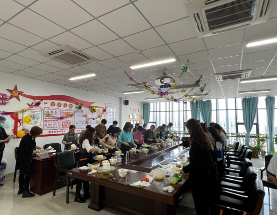 本次活动分为蛋糕烘焙和团建游戏两个环节。系部工会邀请到专业的烘焙老师进行现场指导,教师们认真聆听蛋糕烘焙师给大家讲解烘焙工具的使用、蛋糕裱花的方法与技巧。在烘焙师的细心指导下,大家将自己精心调制的材料设计成了各种不同形状的蛋糕,整个活动现场飘满了香甜的味道,大家的笑容也如蛋糕般甜蜜。