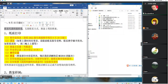 为加强我系兼职教师队伍建设,促进教学工作的规范管理,9月8号晚21时,信息工程系召开了线上兼职教师教学工作会。信息工程系主任陈辉老师,副主任杨静老师、计算机教研室主任刘花丽老师和兼职老师参加了此次会议,会议由杨静老师主持。