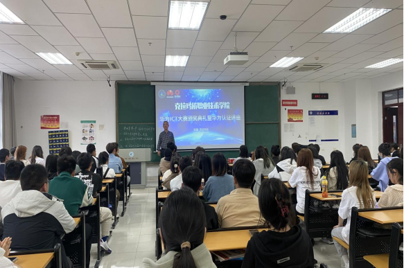 2023年4月14日下午,信息工程分院在C2-1-204举办了“华为ICT大赛2022-2023年度新疆实践赛”颁奖仪式暨华为认证讲座。信息工程分院党支部书记田娟、主任陈辉、泰克教育新疆区负责人裴光辉以及网络、云计算、软件、大数据等专业的学生级获奖选手参加了本次会议。