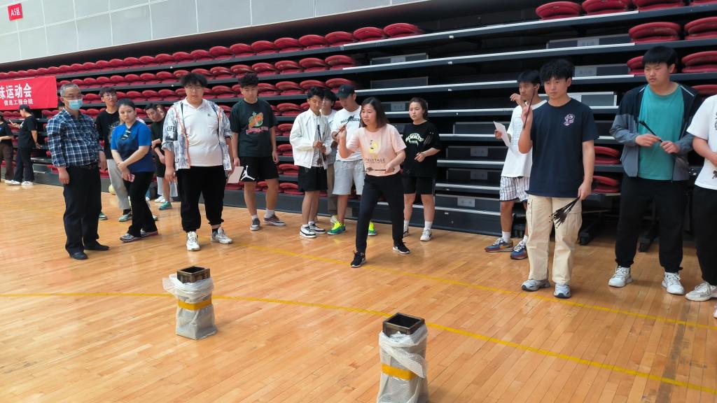 此次趣味运动会共设有“齐心协力”“抢种抢收”“眼疾手快”“背身夹球”“欢乐投壶”等五个项目。每个项目都要求教师和交友学生一起组队竞赛,比赛一开始,参赛的师生就积极投入到比赛当中,现场聚集了众多观众为运动员们呐喊助威,热烈的气氛感染了在场的每一个人,欢笑声回荡在赛场每一个角落。齐心协力包含了快速跑、跳绳、运球射门三个小活动,师生各司其职还要顾全大局才能保证高效完成比赛;抢种抢收考验了师生之间的平衡性,既需要迅速找节奏,又需要有一定的策略与技巧;眼疾手快反映了选手们的反应能力;背身夹球考验了师生间的默契;欢乐投壶则是对于心理和技巧的双重考验,拥有良好的心理素质与充沛的体力才能在这一关取得胜利。