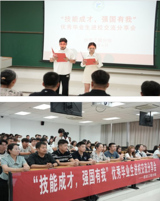 为进一步发挥榜样力量,鼓舞在校学生热爱学校、努力学习,树立远大理想,6月12日,信息工程分院在C2-203教室举办“技能成才,强国有我”优秀毕业生经验交流分享会,用身边的人讲身边的事,领航青春,助力成长。