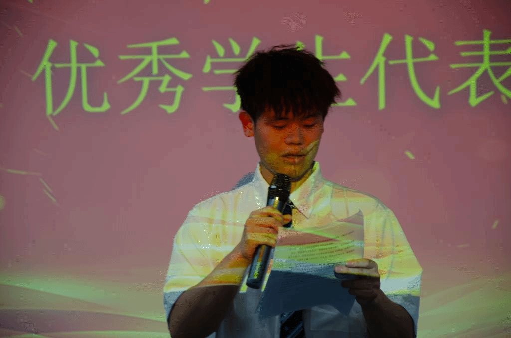 软件2231班赵喜龙作为优秀学生代表与大家分享了成长经验。他表示:“作为青年大学生,我们要尽自己最大的努力去谱写人生的乐章,不论我们走到哪里,都要不忘初心。带着学院给予我们的宝贵财富,用最饱满的热情去勇敢的面对挑战,用最豪迈稳重的步伐朝着美好的未来努力前进。