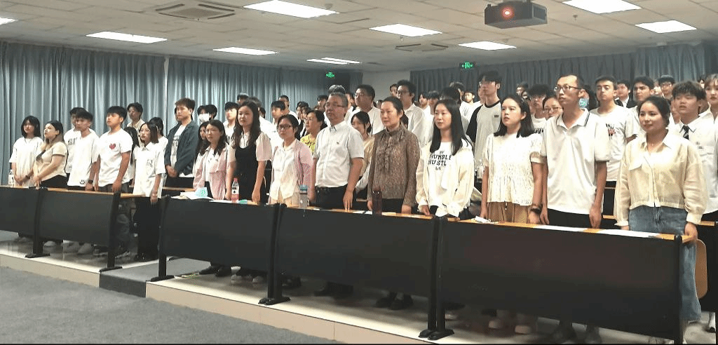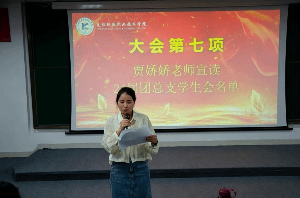 随着颁奖仪式完成,接下来由分院辅导员老师宣读24届团总支学生会名单并进行授牌仪式。