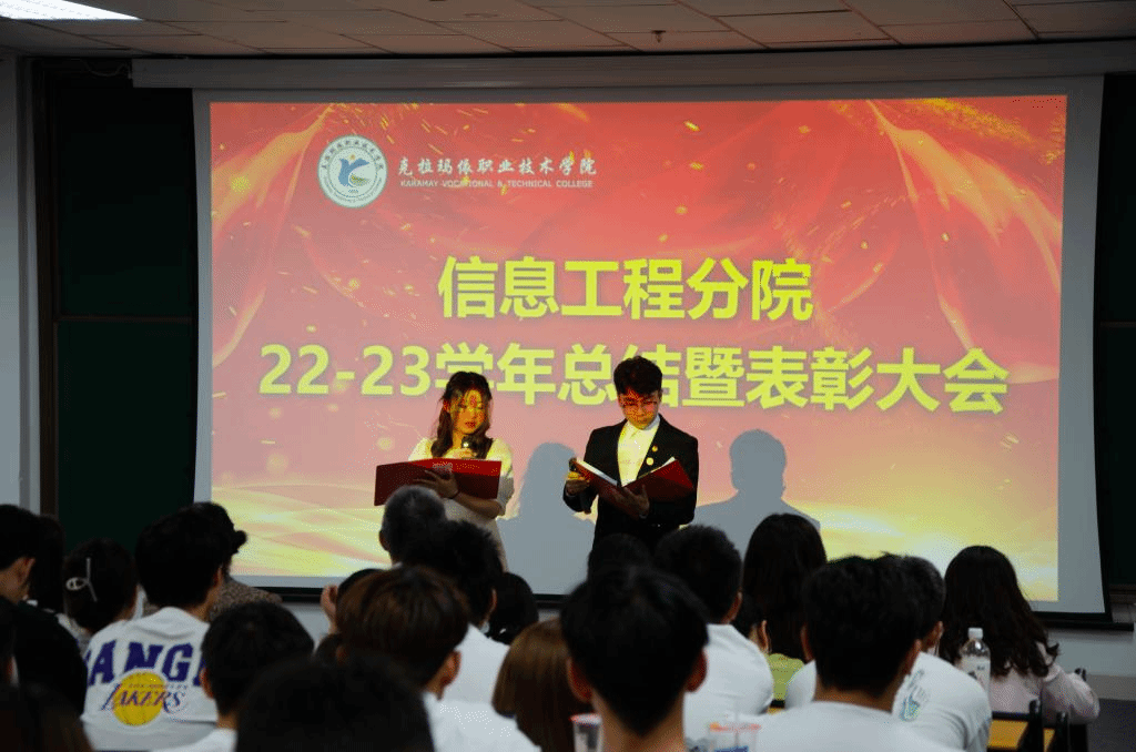 六月仲夏,万木芳华。为树立先进典型,发挥优秀学生的榜样引领作用,6月18日,克拉玛依职业技术学院信息工程分院2022-2023年度总结暨表彰大会在C2-II-103教室隆重举行。信息工程分院党支部书记田娟,分院主任陈辉、全体辅导员、班主任老师及各班代表参加本次大会。
