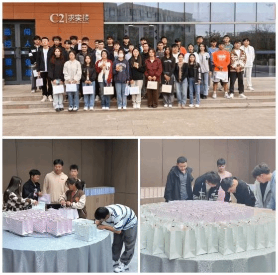 “9.29日中秋节当天,信息工程分院田娟,魏军和辅导员老师们,来到我们中间,为留校的200名同学发放了精美的中秋礼物,将分院的温暖送到学生手上,缓解同学们思乡的情绪,共享中秋佳节的喜悦。通过发放月饼的活动,进一步促进了我们跟老师之间的互动,也加深了对传统节日的认识。我们一定把这份关心关爱转化成前进的动力,学好专业知识,锻炼好身体,为服务社会、报效国家贡献力量。”