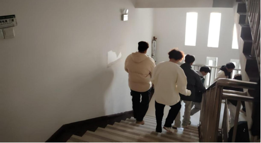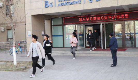 演练开始前,辅导员和安全员强调了几点注意事项:一是要保证大楼各通道的畅通;二是逃生疏散时用手捂住口鼻,低姿快跑;三是参加演习人员要听从指挥,认真配合,在疏散过程中,做到相互照顾,切记不要猛跑,以免造成踩踏。