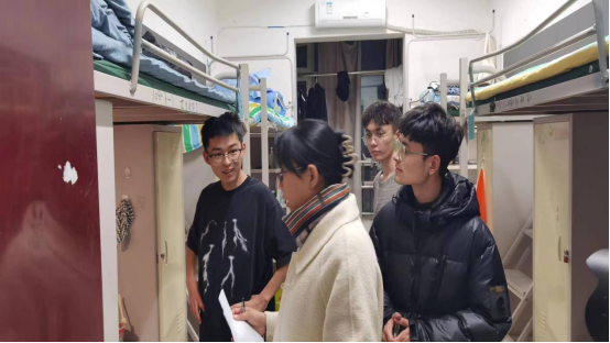 为延续和保持宿舍内务整理水平,进一步加强大学生文明教育,发挥学生公寓的育人作用,构建团结友爱、互帮互助、向上好学的寝室氛围,11月19日晚上20:20,分院领导、全体辅导员以及各班班主任准时在B2和B6楼下集合,按照分组安排,联点辅导员和分组班主任一起下宿舍按新的内务标准打分,之后分院汇总打分后会评选出B2、B6楼的优秀单元、优秀宿舍、优秀个人若干给予奖励。