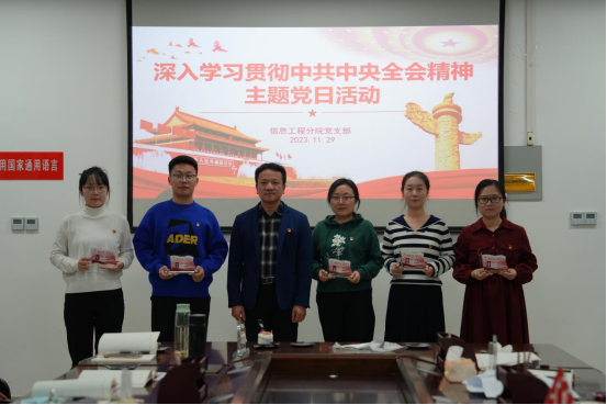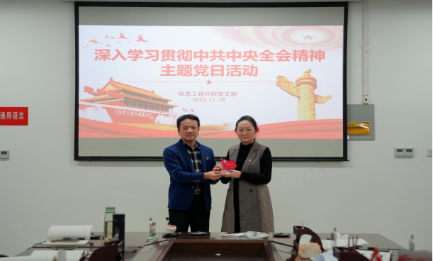 为深入学习贯彻中共中央全会精神,11月29日下午,信息工程分院在C3-II-510会议室组织全体党员教师开展“深入学习贯彻中共中央全会精神”11月份“党旗映天山”主题党日活动。