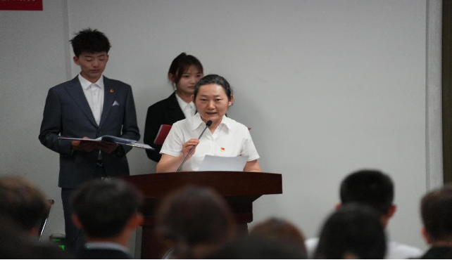 大会第一项升国旗,接着由党支部书记田娟老师致开幕词,她回顾分院上一届团总支学生会各部门和各社团的取得的成绩,并对上一届学生会干部们的辛勤工作给予了充分肯定。