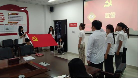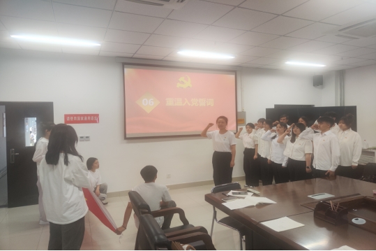 入党介绍人为新党员佩戴党徽,组织委员带领新党员在党旗下庄严宣誓,誓言铮铮,表达了他们坚定的政治信仰和对党的忠诚。