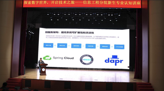 讲座邀请了两位行业内的资深专家担任主讲。首先登台的是红有软件股份有限公司研发部副经理侯斌,他为同学们带来了一场主题为“云计算:概念、应用与未来趋势”的精彩讲座。