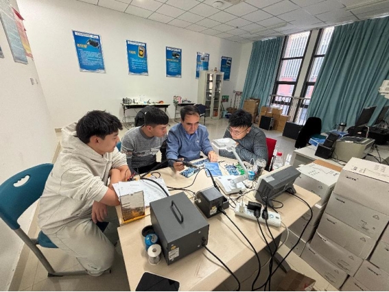 信息工程分院的短视频创作与运营、数字产品检测与维护两个赛队是师生同赛的模式,不仅考察学生的水平,也同样考察着教师的专业技能,师生携手并肩,如同紧密咬合的齿轮,在训练中相互切磋、共同进步。而刚放假寒假,对口帮扶院校泽普县中等职业技术学校的师生们便风尘仆仆赶来,加入到备赛的行列。克拉玛依职业技术学院信息工程分院的备赛老师们,拥有多个省赛一等奖的宝贵经验,毫无保留地为远道而来的伙伴们传授技艺。王谊书记对泽普县中等职业技术学校的备赛师生同样关怀备至,详细询问他们在学院的学习、生活以及备赛情况,为远道而来的兄弟院校送去了关心和温暖。
