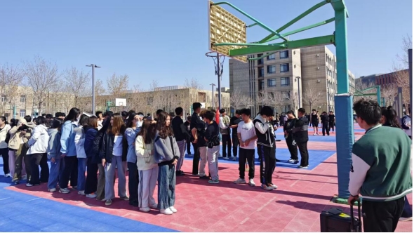 学生有序撤离后在篮球场集合