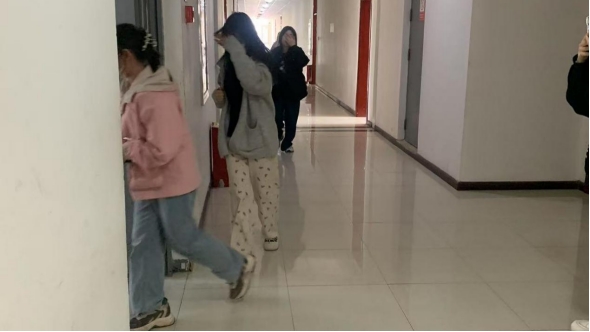 学生在宿舍楼内有序撤离