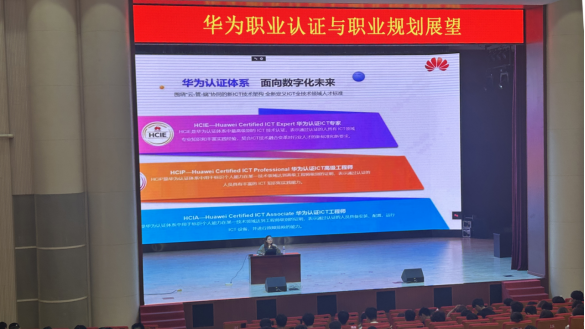 讲座现场,主讲专家从ICT行业发展趋势切入,结合5G、人工智能、云计算等前沿技术应用实例,系统阐释了ICT技术在数字经济时代的重要地位与广阔前景。针对学生们关注的职业规划问题,专家重点介绍了华为职业认证体系,详细讲解HCIA(华为认证ICT工程师)、HCIP(华为认证ICT高级工程师)、HCIE(华为认证ICT专家)等不同等级认证的能力要求、知识体系及就业方向,强调认证对提升职业竞争力的重要作用。