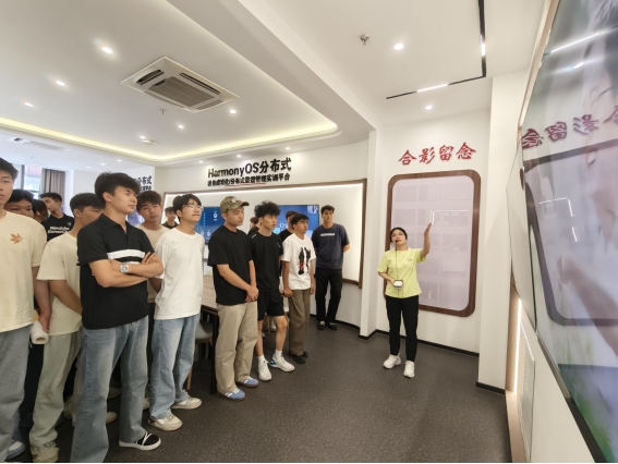 面向全校师生的华为开发者创新中心参观在C3-1-206鸿蒙实训室顺利举行,由主讲老师张月霞详细讲解了多个前沿技术实训平台,包括AR/VR实训平台、HarmonyOS分布式设备虚拟化与分布式数据管理实训平台、HarmonyOS分布式软总线与分布式任务调度实训平台,以及智能家居实训平台,全面展示了分院在智能终端操作系统及应用开发方面的教学成果,同时现场还分享了分院在各类赛事中取得的优异成绩,进一步激发了师生对相关领域学习与实践的热情。
