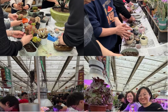随后,活动进入DIY多肉微景观制作环节。在专业老师的指导下,大家纷纷动手,将一株株可爱的多肉植物与精致的小饰品巧妙搭配,打造出一个个独具匠心、充满生机的“方寸花园”。现场欢声笑语不断,大家在轻松愉快的氛围中交流心得、分享创意,展现出新时代女性自信、优雅、积极向上的精神风貌。